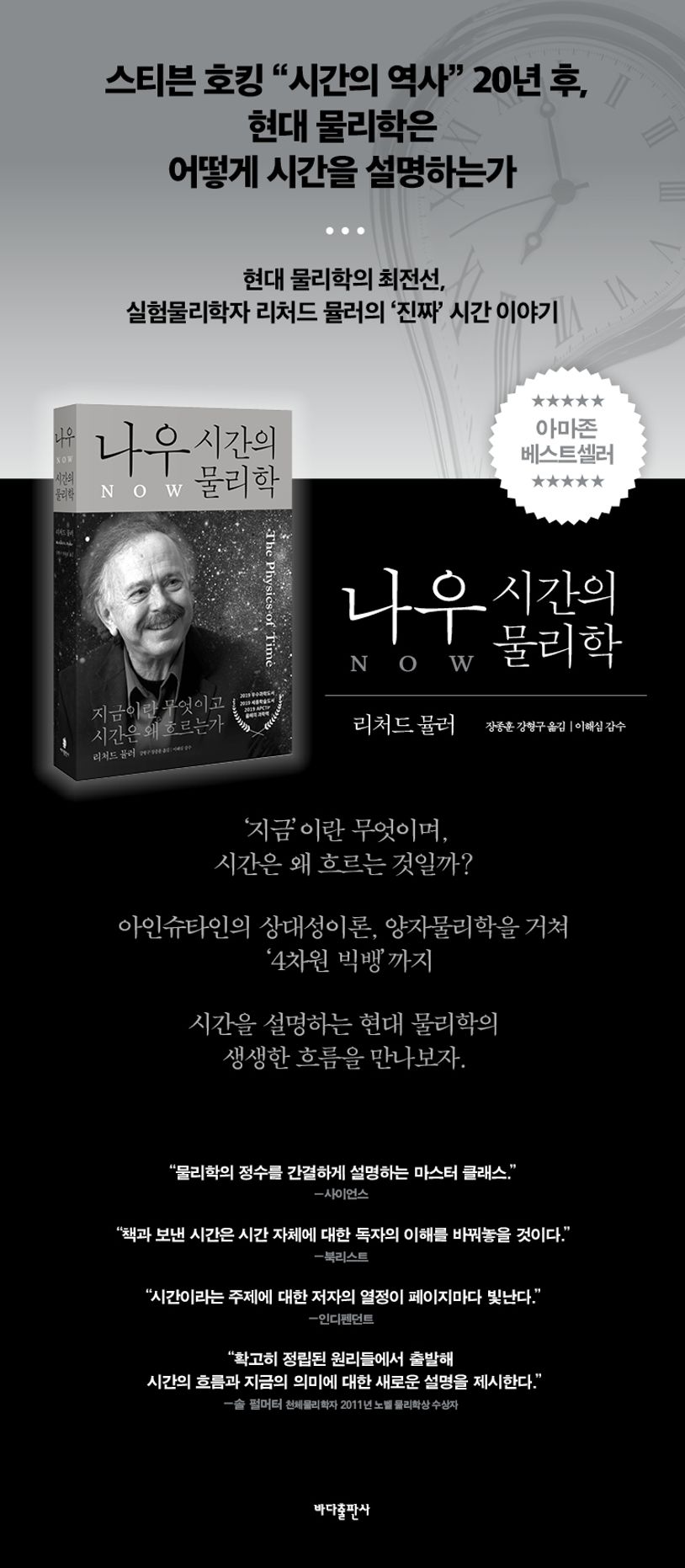 이책은이론가가아닌실험물리학자가시간에대해본격적으로논한최초의책으로서,현대물리학이시간에대해무엇을알고무엇을모르는지를상세히설명한다.뮬러는물리학이우리의직관에어긋나는시간의이상한성질들에대해많은것을알아냈음에도,여전히시간이무엇이며실재와어떤관련이있는지에대해모르는것이많음을솔직히인정하고,‘지금’을인간의자유의지가행사될수있는유일한순간으로규정함으로써물리학뿐아니라철학에도중요한함의를가지는주장을펼친다.