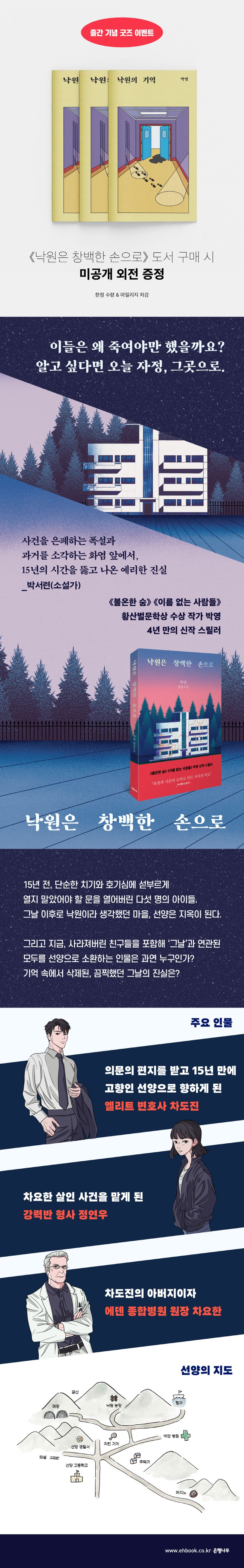 소설을 아름답게 만드는 여러 이유 가운데 으뜸은 그것이 시간의 예술이라는 점이다. 당신도 곧 이 사실을 이해하게 될 것이다. 폐광과 항구의 도시 선양에서, 사건을 은폐하는 폭설과 과거를 소각하는 화염 앞에서, 15년의 시간을 뚫고 나온 예리한 진실로부터. 이 소설은 박영이 우리에게 보내는 초청장이다. 인간의 욕망과 시간의 교차로 만든 서사의 미로에서 당신은 진실을 쥐고 탈출할 수 있을까? 수수께끼를 풀기 위해서는 이야기가 이미 오래전에 시작되었다는 사실을 기억해야 한다. _박서련(소설가)