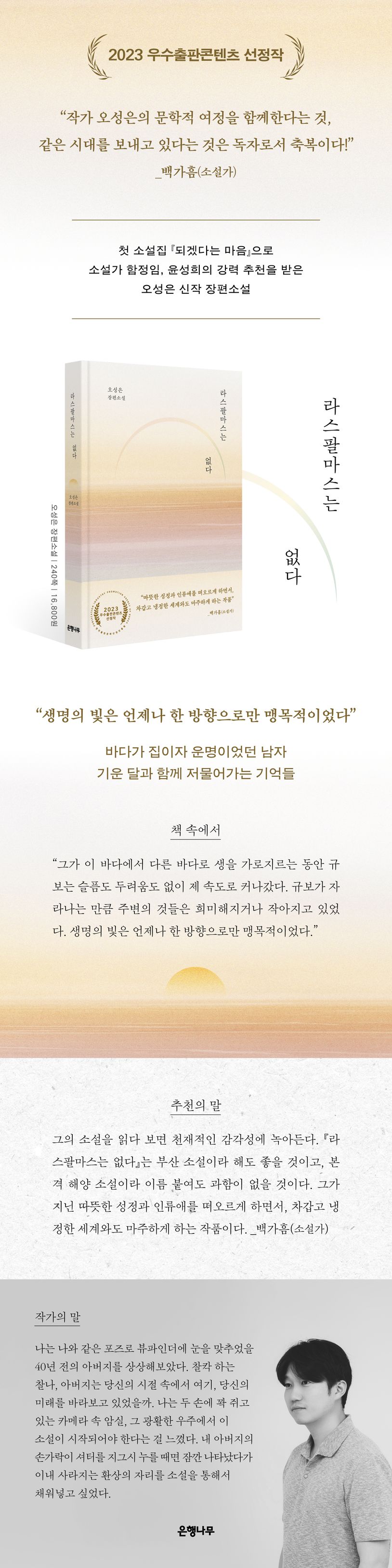 2018년 진주가을문예에 중편소설 〈런웨이〉가 당선되며 작품 활동을 시작한 오성은의 첫 장편소설 《라스팔마스는 없다》가 은행나무출판사에서 출간되었다. 소설집 《되겠다는 마음》에서 보여주었던 섬세한 서정성과 환상 서사는 《라스팔마스는 없다》를 통해 더욱 확장되고 깊어지는 양상을 보인다. 소설가 백가흠은 이번 작품을 읽고 “작가 오성은의 문학적 여정을 함께한다는 것, 같은 시대를 보내고 있다는 것은 독자로서 축복이다”라는 찬사를 남기기도 했다.