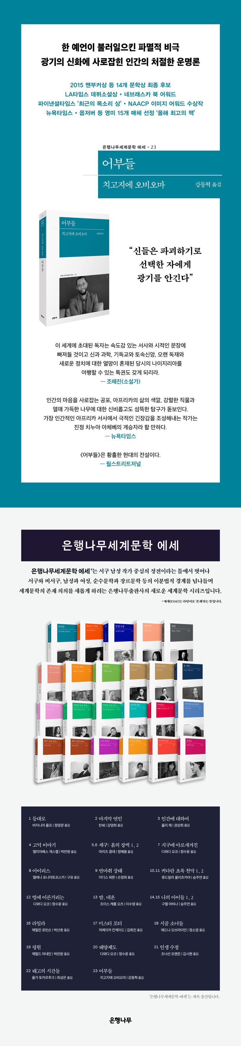 첫 소설 《어부들》과 두 번째 소설 《마이너리티 오케스트라》까지 부커상 최종후보에 오르며 세계적으로 문학성을 인정받은 나이지리아 작가 치고지에 오비오마의 데뷔 장편소설 《어부들》이 은행나무세계문학 에세 시리즈 제23권으로 출간되었다. LA타임스 데뷔소설상, 파이낸셜타임스 ‘최근의 목소리 상’ 등 5개 문학상을 수상하고 부커상을 비롯한 14개 문학상 최종후보에 오른 화제작인 이 작품은 “황홀한 현대의 전설”이라는 극찬을 받으며 작가에게 “치누아 아체베의 진정한 계승자”라는 찬사를 안겨주기도 했다.