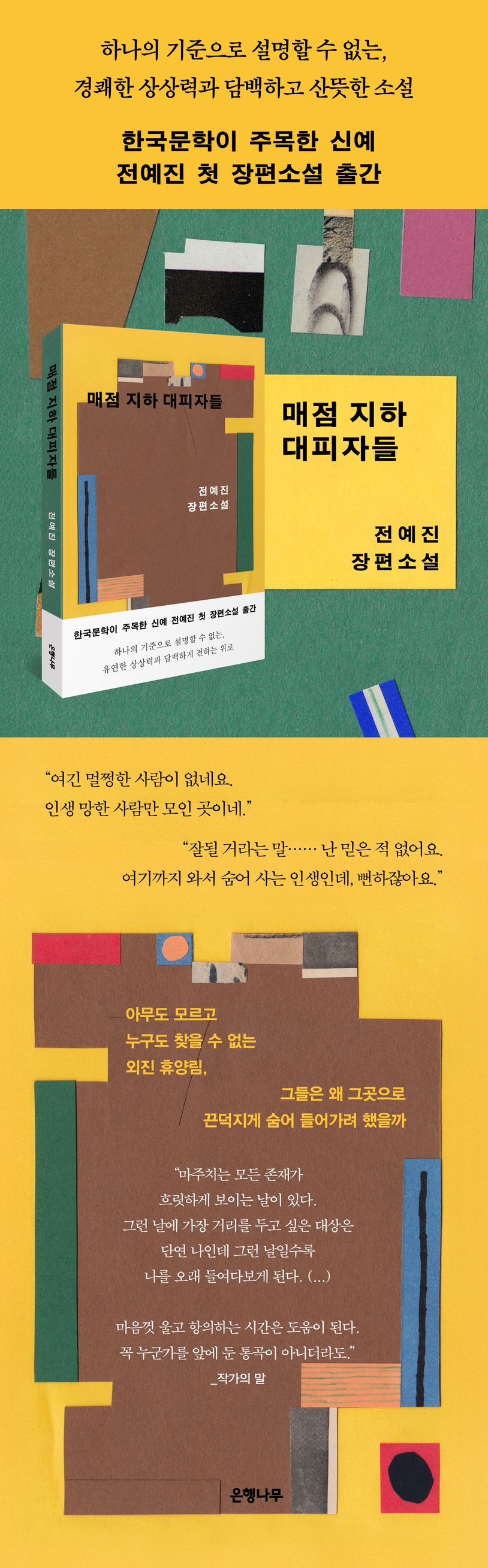 조금은서먹했던옆굴사람들이라운지인지하로모여들고,모여든라운지에서사람들은희미한관계를만든다.각각의사연들,행복해지려고했지만실패했던일들.공통점은무엇으로부터도망쳐여기까지왔다,라는것.크고작은것들에게서회피해여기로숨어버렸다는것.관계는공통된자신들의처지가타인과같음을통해긴밀해진다.그들의미래는정해져있다.잘수습해이곳을빠져나가는것.도망쳐왔던현실에다시안착하기.