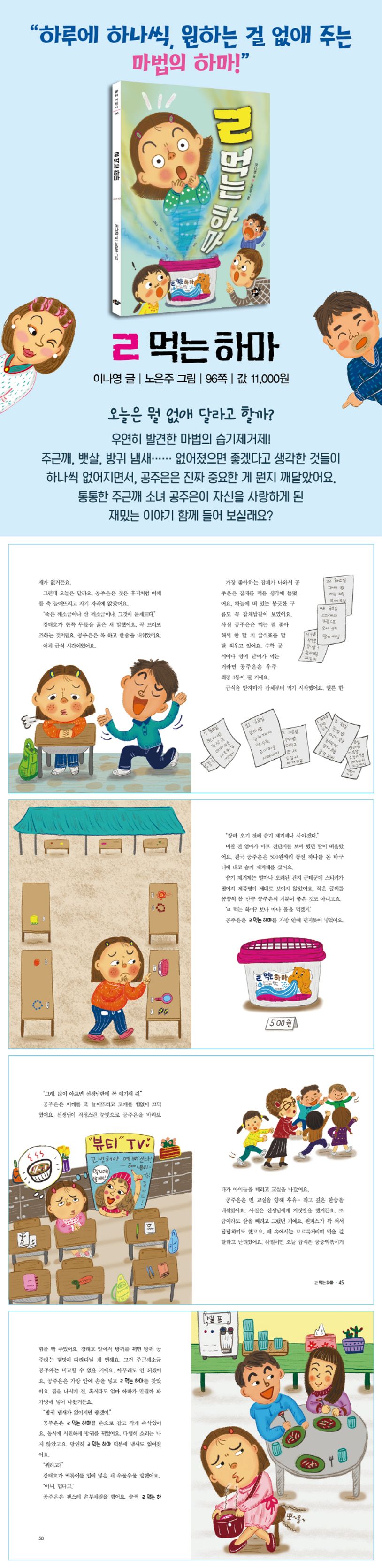 초등학생 고민 1순위로 매번 꼽히는 것 중에 하나가 ‘외모’와 관련된 것이다. 아직 채 자라지 않은 몸으로 ‘다이어트’를 하고 ‘화장’을 하는 초등학생들이 점점 늘고 있는 이유다. 이나영 작가는 이에 대해 “자신을 사랑하지 않는 어린이들이 늘어난다는 이야기죠. 어린이들에게 ‘나는 나 자체로 멋진 존재야! 나는 나를 사랑해!’라는 마음을 가지는 게 중요하다는 이야기를 꼭 하고 싶었어요.”라고 말한다. 지금의 나를 사랑하는 순간, 나를 둘러싼 모든 것들이 내 편이 된다는 것이다. 《ㄹ 먹는 하마》는 문학동네어린이문학상 이나영 작가의 신작으로 어린이들에게 ‘나를 있는 그대로 사랑하자’는 다정한 메시지를 전달하는 판타지 동화다. 말괄량이 공주은이 무엇이든 없애 주는 마법의 습기제거제와 함께 한층 성장하는 과정을 재미있는 상상력과 세심한 묘사로 그려냈다.