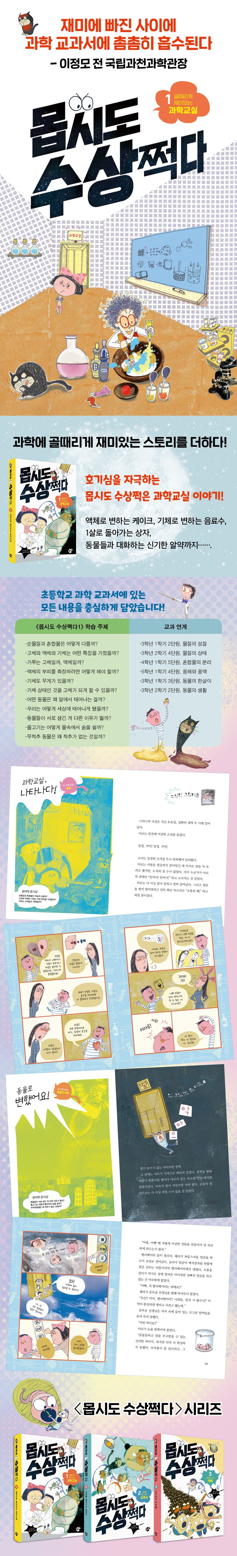 초등학생을 위한 과학동화 《몹시도 수상쩍다①-골때리게 재미있는 과학교실》은 과학은 어려워요. 지루해요. 싫어요. 하는 어린이들에게 우리 주변의 일상생활에서 한 번쯤 일어날 수 있는 사건을 과학 교과서와 연계된 내용으로 담아 교과 내용을 쉽고 재미있게 익힐 수 있는 과학동화입니다. 재미에 빠져 읽다보면 어느새 교과서에서 다루는 내용이 촘촘히 흡수되어 있을거에요. 과학에 대한 흥미와 호기심 자극, 과학적인 사고의 과정까지 훈련할 수 있는 《몹시도 수상쩍다》 과학 판타지 동화는 5권 이상의 시리즈로 출간될 예정입니다.