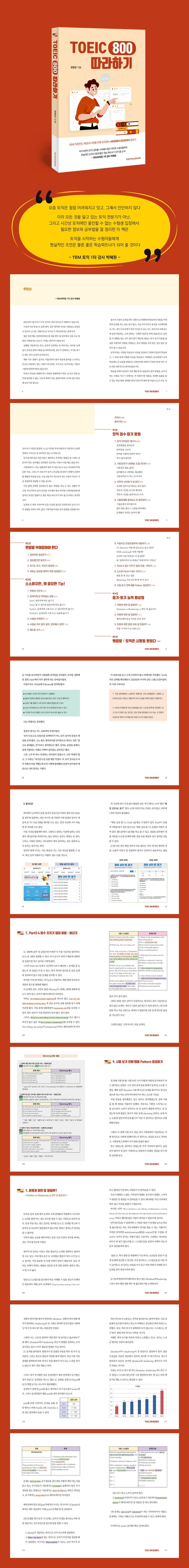 토익 강사도 아니고, 990점 만점자도 아니지만, 아마도, 대다수 토익 수험생들이 현실적 목표로 하고 있을 800점대를 받은 경험을 바탕으로 토익을 준비하면서 고민했던 것들, 찾아봤던 것들, 공부했던 것들을 보기 편하고 잘 읽힐 수 있게, 쉽게 공부방향을 잡아 갈 수 있도록 정리해봤습니다.