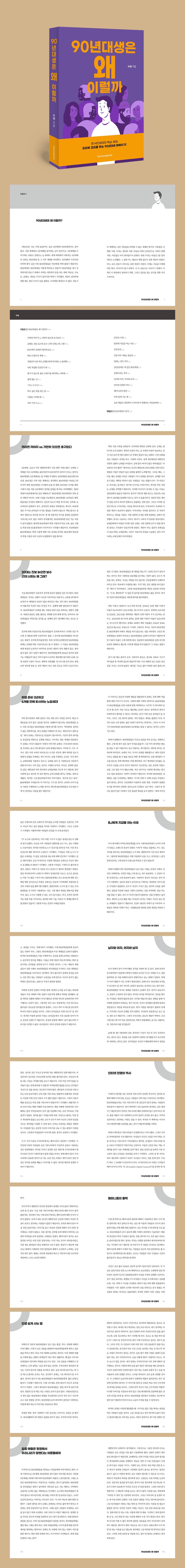 그러면 MZ세대란 말이 나온 만큼 이전 세대들은 사회초년생이었던 90년대생을 이해하고, 넓은 아량으로 감싸주고 있을까? 그렇지 않다. 90년대생이야말로 우리나라 역사상 가장 이해하기 어려운 세대이기 때문이다. 90년대생들조차 스스로를 이해 못 하는데, 다른 세대가 어떻게 이해할 수 있단 말인가? 규정을 내리는 것은 이해하는 것이 아니다. 어떤 경향이나 사실을 아는 것은 지식이지 이해가 아니다. 80년대생 이후로 유전자가 변했다고 생각하는 이전 세대들의 예상과는 다르게, 90년대생들은 이전 세대들과 다르지 않다. 이들도 한국인이다. 이 책은 여기서부터 시작되었다.