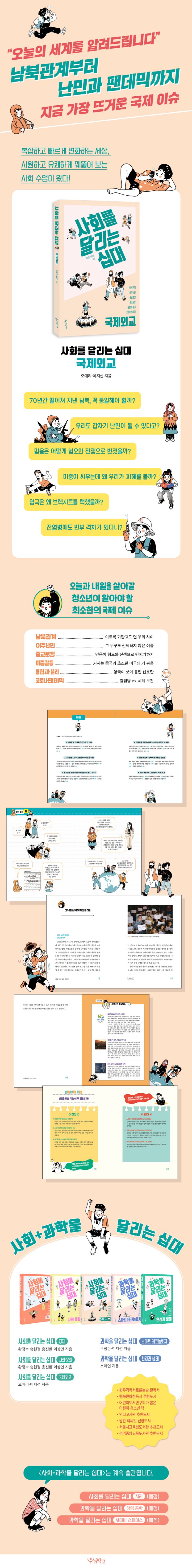 청소년이 알아야 할 최소한의 사회 이슈를 한 권으로 명쾌하게 담아내는 〈사회를 달리는 십대〉 시리즈 『사회를 달리는 십대: 국제외교』가 출간되었다. 전쟁으로 인한 난민 문제나 미중 갈등에서 비롯한 무역전쟁 문제, 긴장감이 흐르는 남북관계 등 잇따라 터져 나오는 묵직한 국제 문제가 정치, 경제를 비롯한 사회 전반의 영역을 흔들며 세계인의 촉각을 곤두세우게 하고 있다. 신문 기자 출신의 저자들은 남북관계, 이주난민, 종교분쟁, 미중갈등, 통합과 분리, 코로나팬데믹 등 오늘날 가장 첨예한 여섯 가지 이슈를 통해 우리 일상과 긴밀히 연결된 국제 사회의 면면을 생생하게 펼쳐 보인다.