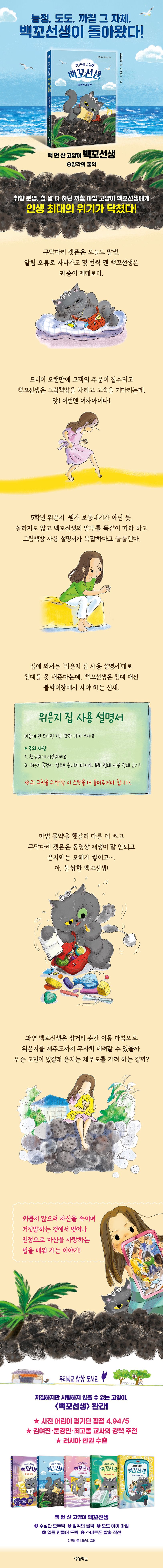 독자들의 뜨거운 반응에 힘입어 백꼬선생 2권이 출간되었다. 재미와 깊이는 딱 두 배로 더해졌다. 첫 권을 읽은 초등학생 독자들은 백꼬선생을 꼭 만나고 싶다, 백꼬선생 그림책방을 찾아가겠다면서 백꼬선생에 환호했다. 백꼬선생의 까칠한데 전혀 까칠하지 못하고 착한 백꼬선생의 매력에 푹 빠졌다. 때론 친구 같고, 때론 선생님 같은 백꼬선생에게 엄마에게 말 못 할 고민을 털어놓고 싶다면서 꼭 찾아와 달라고 했다. 백꼬선생을 만나는 방법은(책 속에서) 간단했다. 고양이 털을 몸에 붙이고, 눈을 꼭 감고 제발, 제발, 제발 외치며 간절히 기도하면 된다. 어느 날 악몽에서 깨어난 한밤중, 5학년 전학생 은지는 무지갯빛 미끄럼틀을 타고 홀린 듯 백꼬선생을 찾아간다. 백꼬선생을 보고도 당황하지 않고, 그의 말투를 금방 따라 하고, 백꼬선생에게 자기네 집 사용 설명서를 들이미는 당찬 소녀 은지에게는 무슨 고민이 있을까? 은지의 진짜 고민을 들은 백꼬선생은 더 업그레이드된 마법 체계와 아이템을 사용해서 장거리 여행을 떠나는데…. 작가의 재미난 상상은 백꼬선생의 마법 아이템 못지않게 업그레이드되어 펼쳐진다.