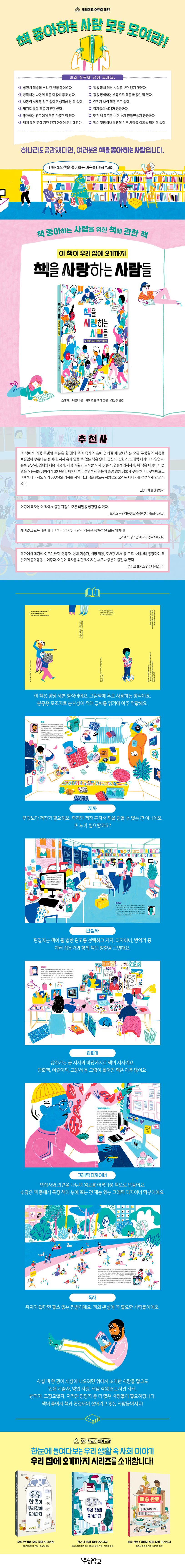 『책을 사랑하는 사람들』은 책 콘셉트부터 제작, 독자의 손에 닿기까지의 모든 과정을 충실히 보여주는 정보 그림책입니다. 프랑스의 아동ㆍ청소년도서 편집자이자 작가인 저자가 책 속 등장인물인 작가로 등장해 책과 책을 둘러싼 사람과 사건을 소개합니다. 이 책의 특별한 점은 한 권의 책을 만들기 위해 참여하는 모든 구성원을 무대 위로 세운다는 것입니다. 작가, 편집자, 삽화가, 그래픽 디자이너, 영업 사원, 인쇄 기술자, 서점 직원, 사서, 평론가, 독자까지 중요도에 차등을 두지 않지요. 개성 가득한 삽화와 함께 책 한 권이 탄생하여 세상에서 이름이 불리기까지 독서를 좋아하고, 책 만드는 일에 관심이 있으며, 출판 산업에 관여하는 사람들이 어떤 일을 하는지 소개합니다. 도서 평론가의 발언 등 중간중간 삽입된 유머와 재치 있는 구성이 지루할 틈 없이 정보를 습득하게 합니다.