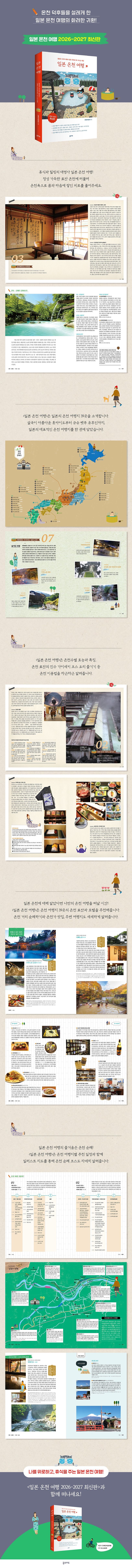 휴식과 힐링의 대명사 일본 온천 여행을 안내하는 가이드북. 온천욕 즐기며 여행하기 좋은 일본의 대표 온천 여행지 39곳과 150여 온천을 소개했다. 온천 여행지마다 추천 료칸, 교통편, 온천 특산품, 주변 여행지, 추천 일정 등 여행에 필요한 정보를 가득 담았다. 또한 탕치, 휴식, 미식 등 온천 타입별 특성과 온천 료칸 이용법도 자세히 알려준다.