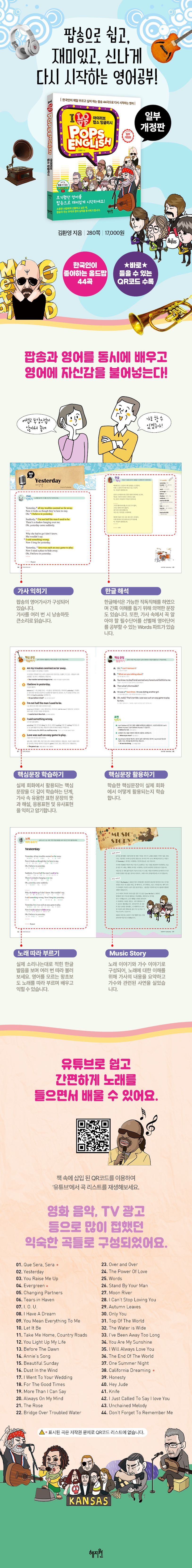 각 곡마다 영어 가사와 한글 해석은 물론, 핵심 단어 정리, 가사 속 주요 문장, 실제 회화에 활용할 수 있는 표현, 따라 읽기 쉬운 한글 발음 표기를 수록해 영어에 대한 부담을 줄이고 자신감을 회복할 수 있도록 돕습니다. 『I Love Pops English』는 문법보다 먼저 영어의 감각을 되찾고 싶은 분들을 위한 팝송 영어 입문서입니다.