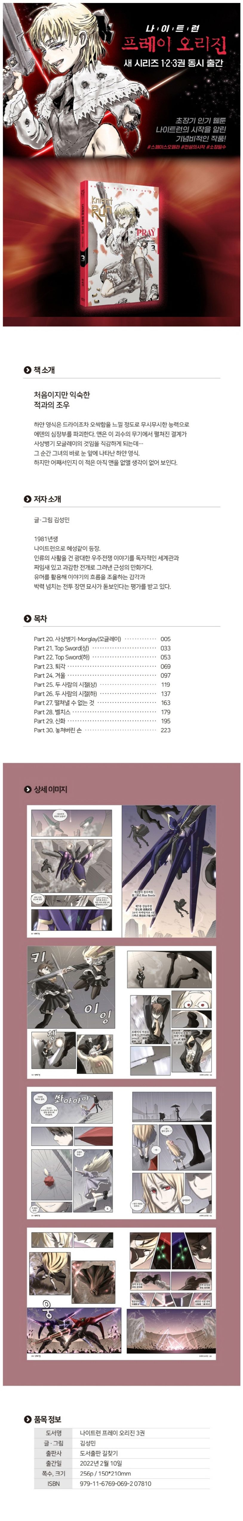 대한민국에서 보기 드문 SF 작품이자 2009년부터 현재까지 13년째 연재를 이어가고 있는 초장기 인기 웹툰 나이트런. 독자적인 세계관과 방대한 설정, 수많은 복선과 충격적인 전개 등으로 호평 받는 이 시리즈의 서막을 알리는 프레이 편은 향후 이야기 전개에 지대한 영향을 미치는 강렬한 캐릭터들을 선보이며 나이트런을 온전히 즐기기 위해 반드시 거쳐야 하는 에피소드로 꼽힌다. 이제 웹툰의 재미와 감동에 더해, 고해상도 이미지와 다듬어진 대사로 높아진 가독성, 그리고 은근히 매력적인 명장면 포토카드까지 단행본에서만 느낄 수 있는 매력을 ‘프레이 오리진’이라는 이름으로 만나 보자!