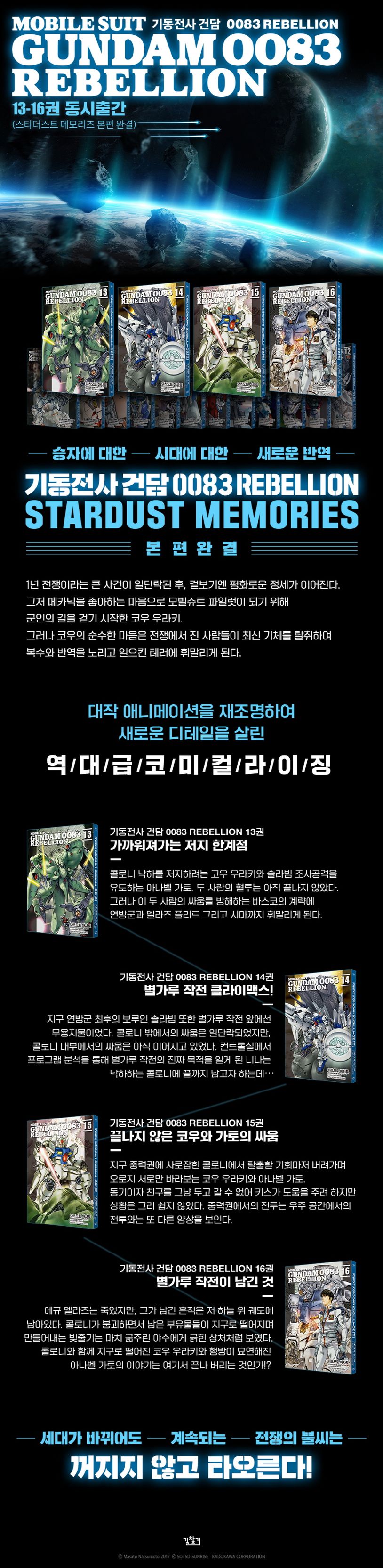 「기동전사 건담 0083 리벨리온」은 기존에 건담 시리즈를 접하지 않았던 사람이라도, 한번 챙겨 볼 만한 가치가 충분한 작품이다. 본래 평가가 좋았던 원작 애니메이션 '기동전사 건담 0083'의 단순한 코미컬라이즈 판으로 그치지 않고, 21세기에 어울리는 내용의 업데이트로 설정의 보충이나 재해석으로 새로운 재미를 추구하여 원작과의 차별화에 성공했다.