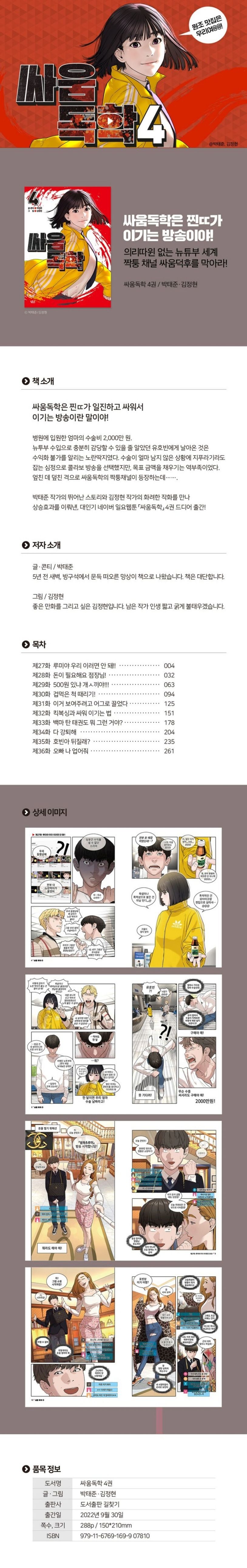 박태준 작가의 뛰어난 스토리와 김정현 작가의 화려한 작화를 만나 상승효과를 이뤄낸, 대인기 네이버 일요웹툰 「싸움독학」 4권이 드디어 출간!