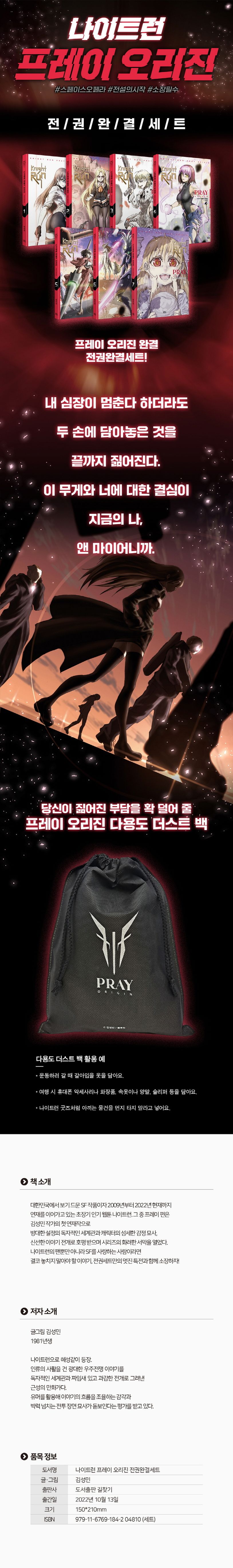 대한민국에서 보기 드문 SF 작품이자 2009년부터 2022년 현재까지 연재를 이어가고 있는 초장기 인기 웹툰 나이트런. 그 중 프레이 편은 김성민 작가의 첫 연재작으로 방대한 설정의 독자적인 세계관과 캐릭터의 섬세한 감정 묘사, 신선한 이야기 전개로 호평 받으며 시리즈의 화려한 서막을 열었다. 나이트런의 팬뿐만 아니라 SF를 사랑하는 사람이라면 결코 놓치지 말아야 할 이야기, 전권세트만의 멋진 특전과 함께 소장하자!