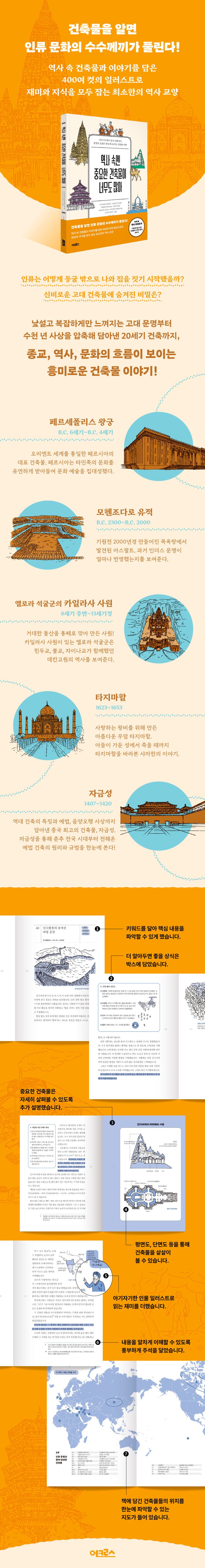 여행하듯 자연환경과 인류와 건축이 빚어낸 이야기를 따라가다 보면, 어느덧 세계의 문명이 서로 영향을 주고받으며 연결되어 발전했음을 깨닫게 된다. 어렵고 딱딱하게만 느껴졌던 문명 세계를 쉽고 재미있게 이해하도록 도와주고, 역사를 입체적으로 바라보는 시각을 갖게 해줄 흥미진진한 가이드가 될 것이다.