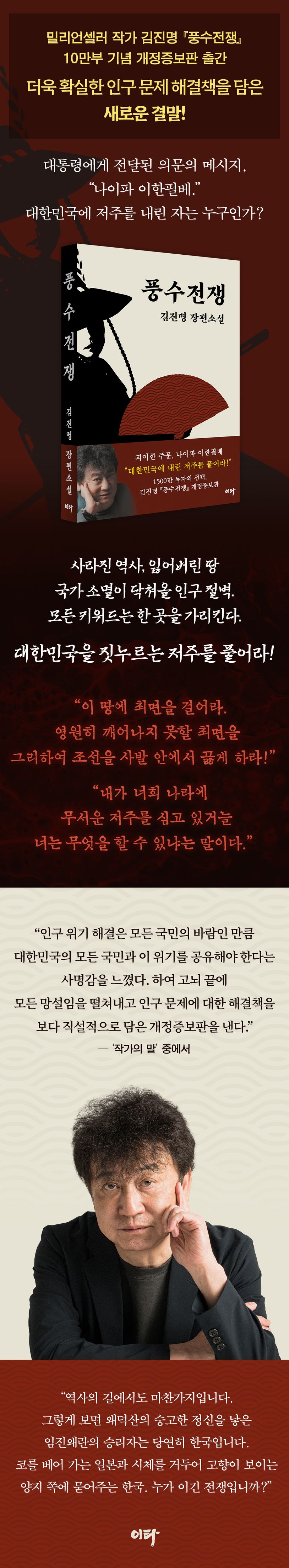 밀리언셀러 작가 김진명의 2년 만의 신작 소설 『풍수전쟁』 출간.