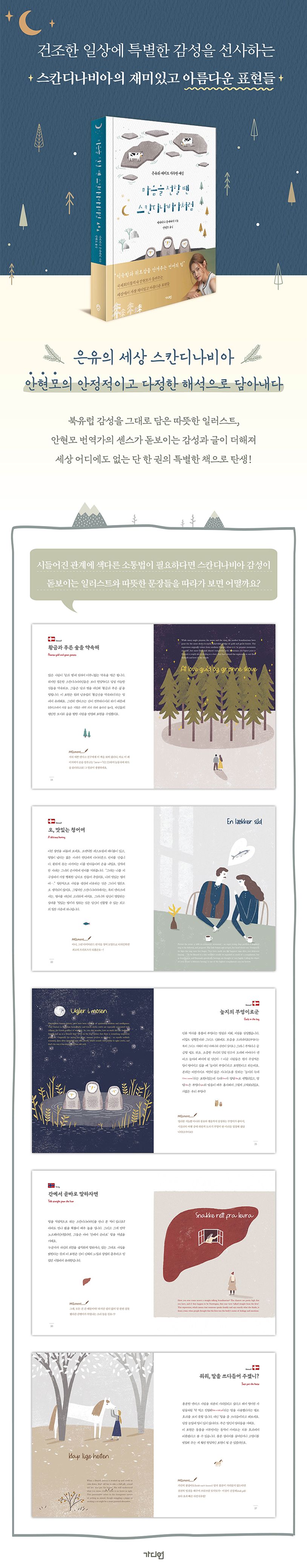 이 책의 또 다른 특별함은 스웨덴 사람이 썼지만, 영국에서 영문판으로 출판되었다는 점이다. 게다가 국제회의통역사로 북미정상회담 중계, 아카데미, 그래미 시상식 등 주요 석상에서 통역을 담당하는 안현모가 번역을 맡아 풀이하기 어려운 다른 나라 정서가 담긴 언어를 우리말로 선명하게 옮겼다. 스칸디나비아의 아름다운 표현들을 영어식 표현으로도 이해할 수 있을 뿐 아니라, 역자의 센스가 돋보이는 감성과 글이 더해져 세상 어디에도 없는 단 한 권의 특별한 책으로 탄생되었다. 생활과 습관, 역사, 정서와 성향이 모두 반영된 스칸디나비아 사람들의 마음속 언어를 들여다보자.