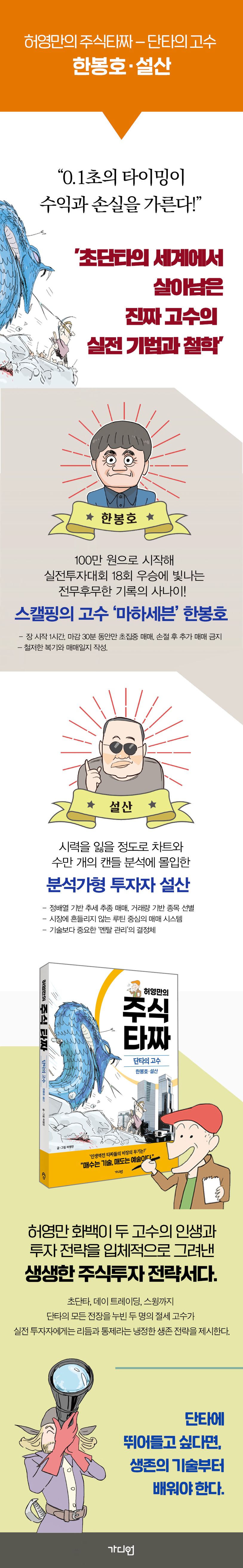 초단타, 데이 트레이딩, 스윙까지 단타의 모든 전장을 누빈 두 명의 절세고수가 살아남아 성공한 실전 노하우와 투자 철학을 담아낸 실전투자 가이드다. 허영만 화백은 이 두 타짜의 치열한 투자 인생과 단타 세계의 냉혹한 생존 전략을 입체적인 만화로 풀어냈다.
