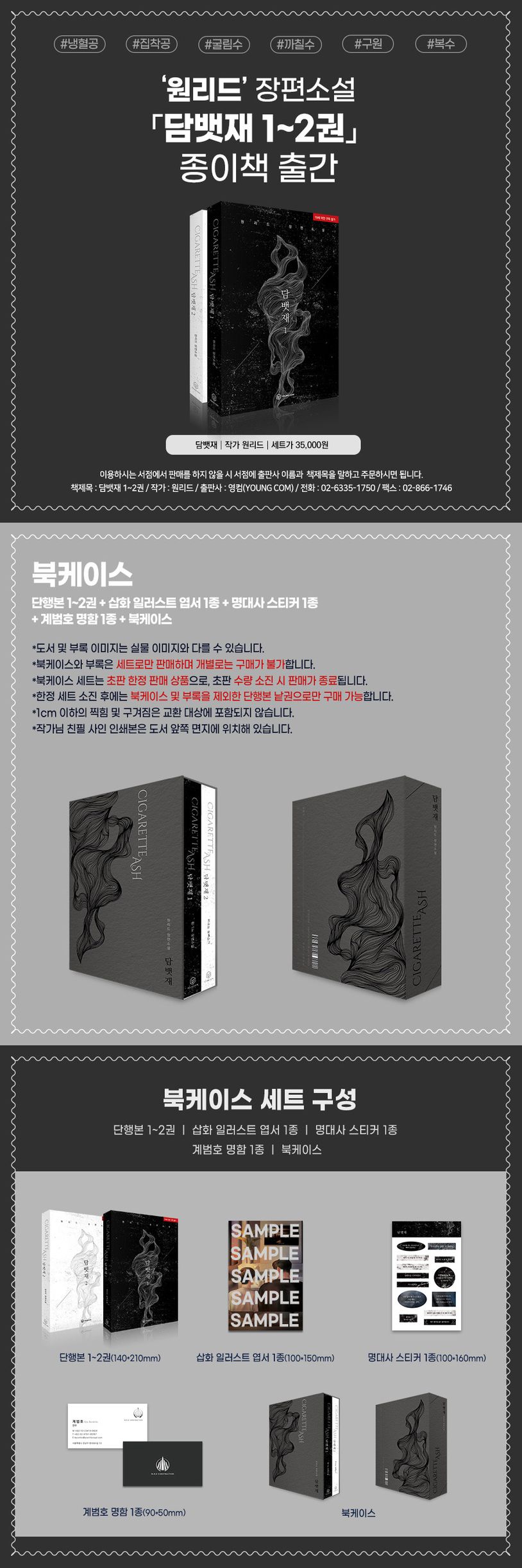 담뱃재 북케이스 세트(초판 한정) (원리드 장편소설 | 전 2권 | 19세 이상 상품)