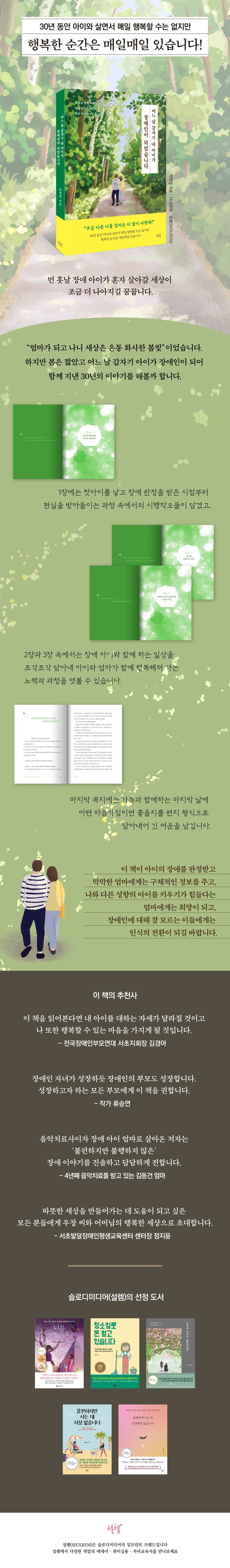 이 책이 아이의 장애를 판정받고 막막한 엄마에게는 구체적인 정보를 주고, 나와 다른 성향의 아이를 키우기가 힘들다는 엄마에게는 희망이 되고, 장애인에 대해 잘 모르는 이들에게는 인식의 전환이 되길 바란다.