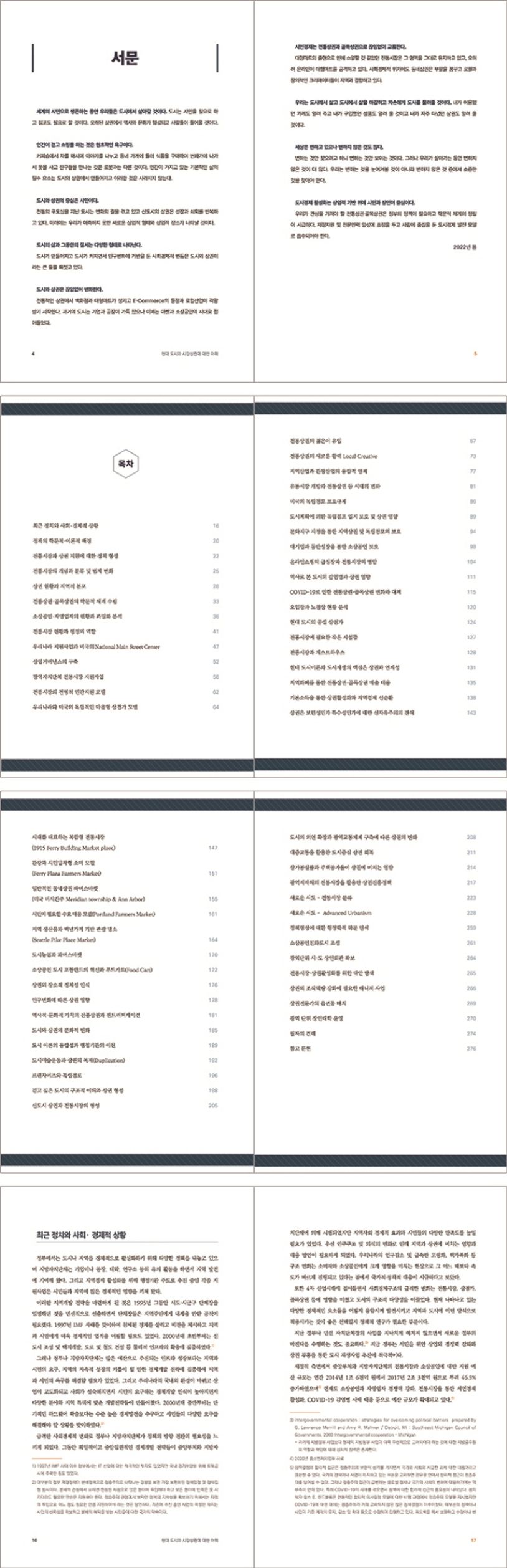 서문 책의요지 본문현장사례 최근정치와사회·경제적상황 정책의학문적?이론적배경 전통시장과상권지원에대한정책형성 전통시장의개념과분류및법제변화 상권현황과지역적분포 전통상권·골목상권의학문적체계수립 소상공인·자영업자의현황과과밀화분석 전통시장현황과행정의역할 우리나라지원사업과미국의NationalMainStreetCenter 상업거버넌스의구축 전통시장지원정책선호도 광역자치단체전통시장지원사업 전통시장의전형적민관지원모델 우리나라와미국의독립적인마을형상점가모델 전통상권의젊은이유입 전통상권의새로운활력LocalCreative 지역산업과관광산업의융합적연계 유통시장개방과전통상권등시대의변화 미국의독립점포보호규제 도시계획에의한독립점포입지보호및상권영향 문화지구지정을통한지역상권및독립점포의보호 대기업과동반성장을통한소상공인보호 온라인쇼핑의급성장과전통시장의명암 역사로본도시의감염병과상권영향 COVID-19로인한전통상권·골목상권변화와대책 5일장과노점상현황분석 현대도시의공설상점가 전통시장필요한작은시설들 전통시장과게스트하우스 현대도시이론과도시재생의핵심은상권과연계성 지역화폐를통한전통상권·골목상권매출대응 기본소득을통한상권활성화와지역경제선순환 상권은보편성인가특수성인가에대한신자유주의의견해 시대를대표하는복합형전통시장(1915FerryBuildingMarketplace) 관광과시민밀착형소비모델(FerryPlazaFarmersMarket) 일반적인동네상권파머스마켓(미국미시간주Meridiantownship&AnnArbor) 시민이필요한수요대응모델(PortlandFarmersMarket) 지역생산품과백년가게기반관광명소(SeattlePikePlaceMarket) 도시농업과파머스마켓 소상공인도시포틀랜드의혁신과푸드카트(FoodCart) 상권의장소적정체성인식 인구변화에따른상권영향 역사적·문화적가치의전통상권과젠트리피케이션 도시와상권의문화적변화 도시이론의융합성과행정기관의이전 도시예술운동과상권의복제(Duplication) 프랜차이즈와독립점포 걷고싶은도시의구조적이해와상권형성 신도시상권과전통시장의형성 도시의외연확장과광역교통체계구축에따른상권의변화 대중교통을활용한도시중심상권회복 상가공실율과주택공가율이상권에미치는영향 광역지자체의전통시장을활용한상권진흥정책 새로운시도-전통시장분류 새로운시도-AdvancedUrbanism 정책형성에대한행정학적학문인식 소상공인친화도시조성 광역단위시·도상인회관확보 전통시장·상권활성화를위한대안탐색 상권의조직역량강화에필요한매니저사업 상권전문가의읍면동배치 광역단위장인대학운영 필자의견해 참고문헌