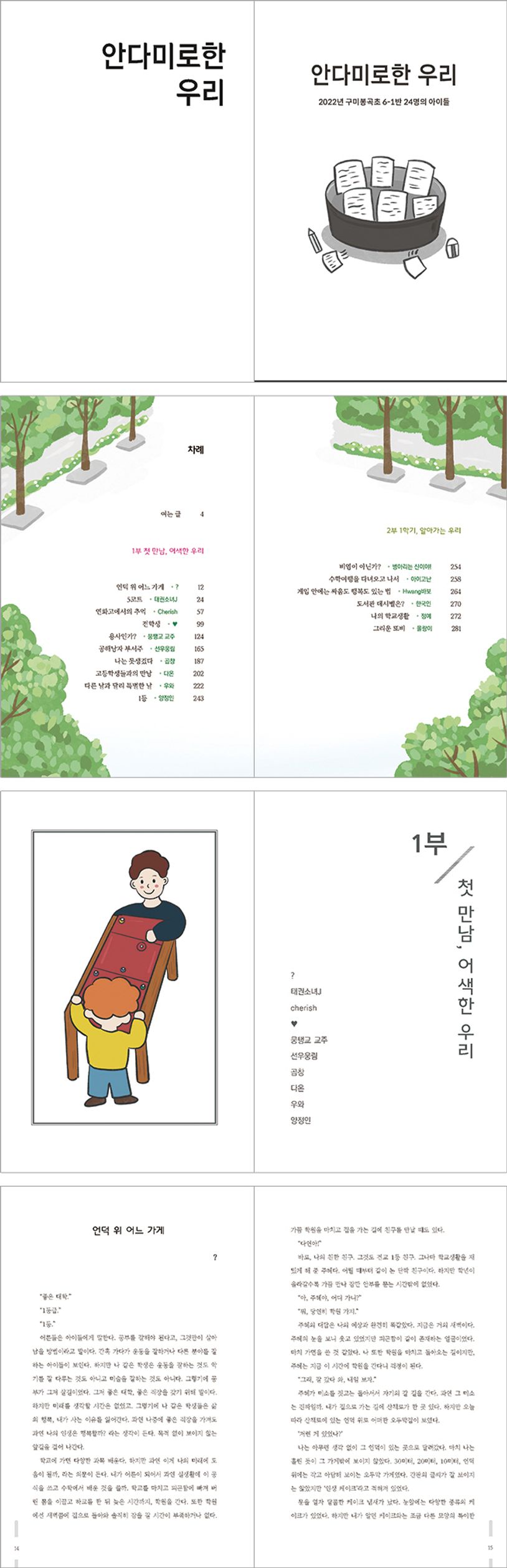 삶의 힘든 순간, 더는 앞으로 나아갈 힘조차 없는 그때. 여러분들의 학창 시절, 가장 행복했던 그 순간으로 이 책이 데려다줄 것입니다. 이 책은 각기 다른 삶을 살아가는 우리지만 모두의 삶과 생각과 마음이 소중하다는 묵직한 감동을 선사합니다.