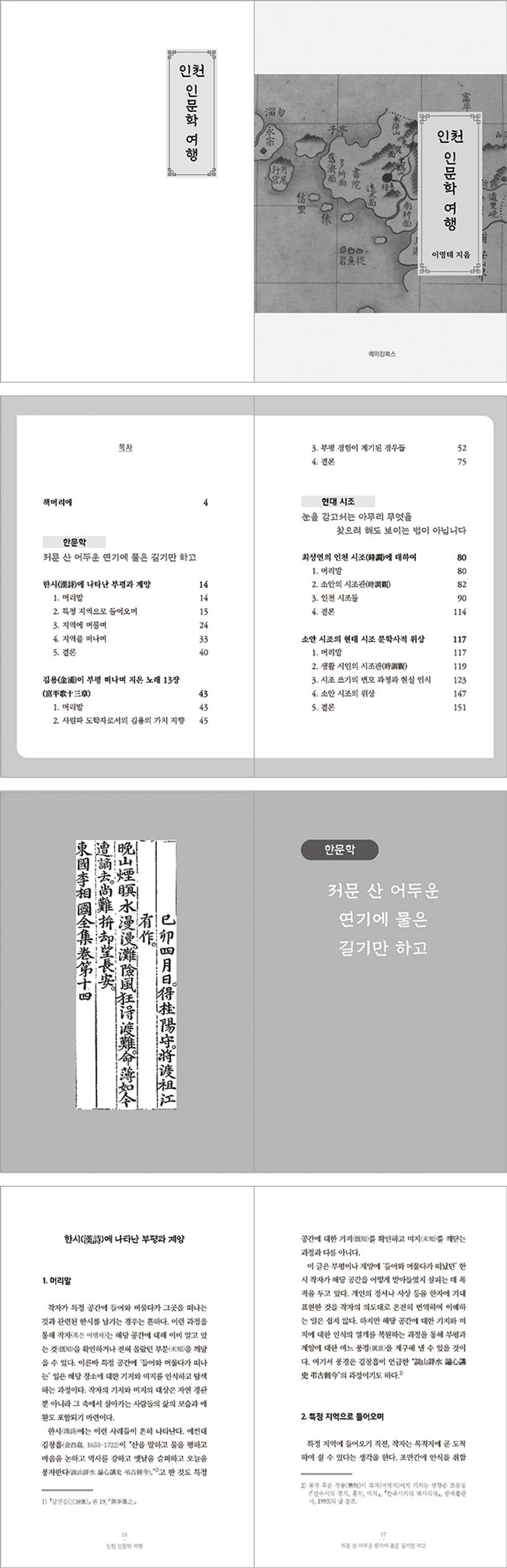 『인천 인문학 여행』은 다채로운 인천 사람 무늬를 인문학 관점에서 독자들과 공유하기를 바란다. 누구건 출처를 따라가면서 자료와 자료 사이를 재구성하는 소양에 따라 지역인문학 대상에 가까이 다가설 수 있다. 이 책은 새로운 자료가 발굴되면 또다시 이야기를 채워 넣는 인문학 정신과 맞닿는 여행기이다.