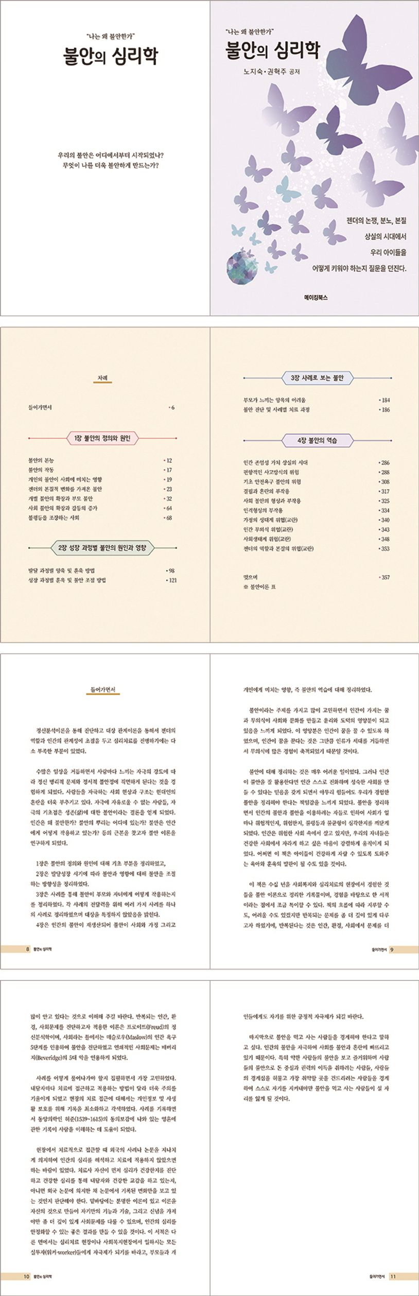 들어가면서불안의본능불안의작동개인의불안이사회에미치는영향젠더의본질적변화를가져온불안개별불안의확장과부모불안사회불안의확장과갈등의증가불평등을조장하는사회발달과정별양육및훈육방법성장과정별훈육및불안조절방법부모가느끼는양육의어려움불안진단및사례별치료과정인간존엄성가치상실의시대편향적인사고방식의위험기초안전욕구불안의위험결핍과혼란의부작용사회불안의형성과부작용인격형성의부작용가정의생태계위협(교란)인간무의식위협(교란)사회생태계위협(교란)젠더의역할과본질의위협(교란)맺으며※불안이론표