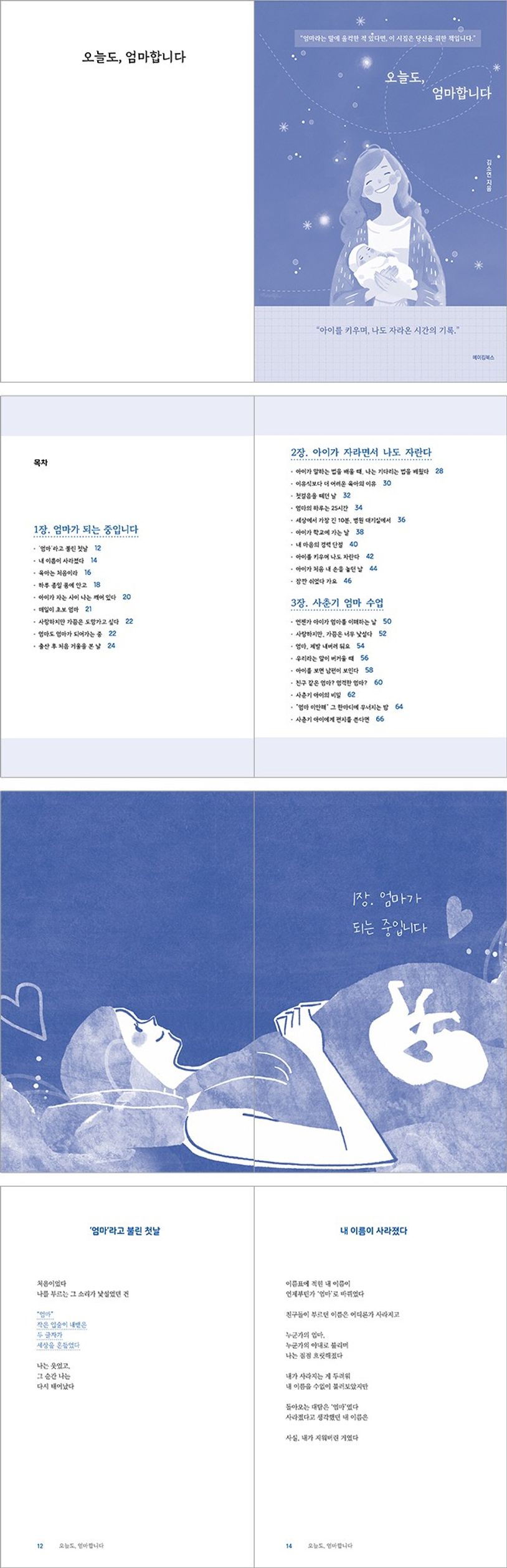 『오늘도, 엄마합니다』는 아이를 품에 안던 첫날부터, 사춘기 아이와의 거리두기까지, 그리고 아이의 독립을 지켜보는 엄마의 시간까지… 한 사람의 엄마로 살아내는 모든 순간을 시의 언어로 눌러 담은 시집입니다. 눈물도, 미소도, 침묵도, 사랑이었다는 걸 늦게야 깨달았던 모든 엄마들에게 조용히 안아주는 책이 되기를 바랍니다.