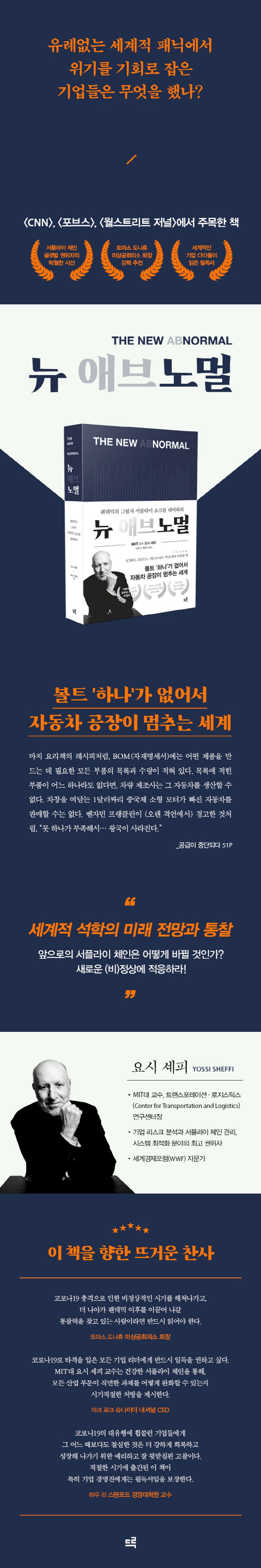 현 MIT 교수인 요시 셰피는 서플라이 체인 분야의 세계적 석학이자 선구자이다. 특히 서플라이 체인에 대한 학술적 전문성과 함께 직접 기업을 운영해온 실무적인 지식을 더한 경력을 바탕으로 회복탄력성(리질리언스)을 강조하며 기업의 유연한 대처를 강조왔다. 이 책에는 불확실하고 예측할 수 없는 포스트 팬데믹 시대를 기회로 전환한 세계 기업의 사례가 설명되어 있다.