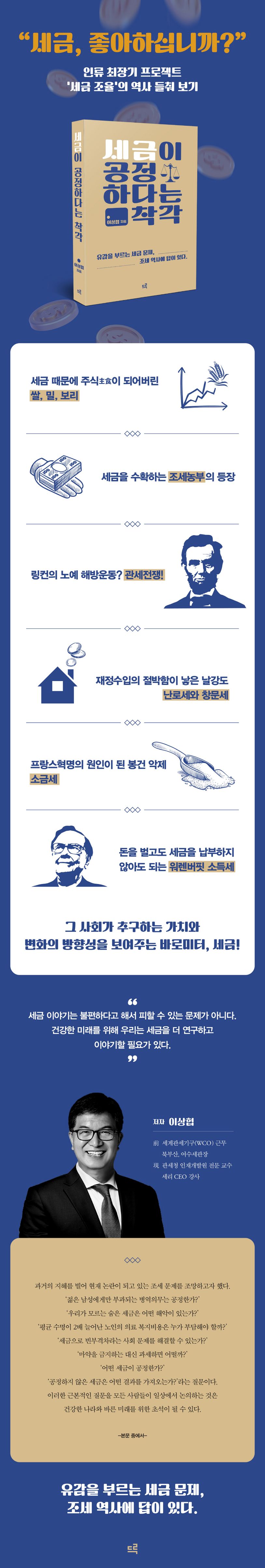 과거의 지혜를 빌어 현재 논란이 되는 조세 문제를 조망하는 책이다. 인류 역사의 굵직한 장면에는 당시의 치열했던 조세 줄다리기가 숨겨져 있다. 세금이 인류 역사에 자리 잡으며 행해진 설득의 메커니즘과 폭력, 시스템의 견고함을 교묘하게 빠져나가는 탈세의 기술을 만나보자. 오늘날 유의미하게 사용될 바르고 공정한 조세 제도의 단초를 마련하게 될 것이다.