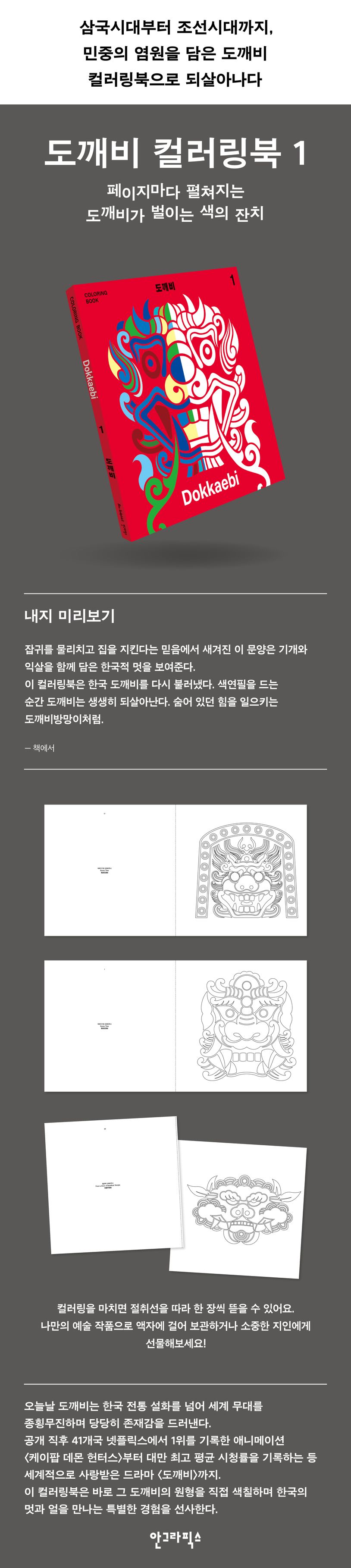 오늘날 도깨비는 한국 전통 설화를 넘어 세계 무대를 종횡무진하며 당당히 존재감을 드러낸다. 공개 직후 41개국 넷플릭스에서 1위를 기록한 애니메이션 〈케이팝 데몬 헌터스〉부터 대만 최고 평균 시청률을 기록하는 등 세계적으로 사랑받은 드라마 〈도깨비〉까지, K-콘텐츠에서 한국 도깨비는 신비로운 매력으로 모두를 매료시켰다. 이 컬러링북은 바로 그 도깨비의 원형을 직접 색칠하며 한국의 멋과 얼을 만나는 특별한 경험을 선사한다.