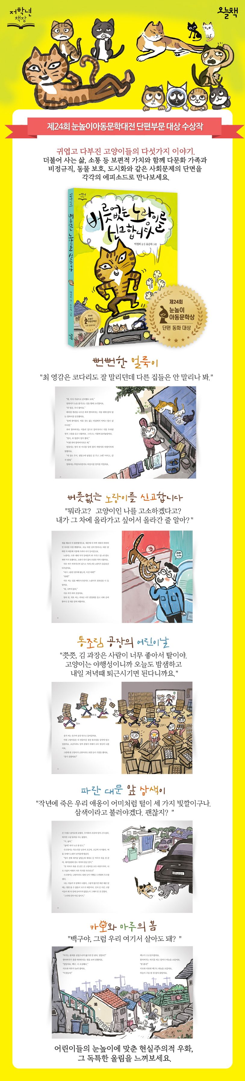 『버릇없는 노랑이를 신고합니다』는 제24회 눈높이아동문학상 단편 부문 대상을 받은 작품이다. 이 책에는 다섯 편의 단편이 실려 있는데, 모두 길 고양이를 소재로 하고 있다. 하지만 단순히 고양이에 대한 이야기가 아니라 고양이와 인간 사이의 관계에 초점을 맞추고 있다. 저자는 고양이와 사람의 마음 사이에서 균형을 맞추기 위해 노력한다. 그 가운데 인간과 동물 사이의 균형을 찾고, 서로 머리를 맞대고 함께 살아가는 방법을 고민하는 것이다.