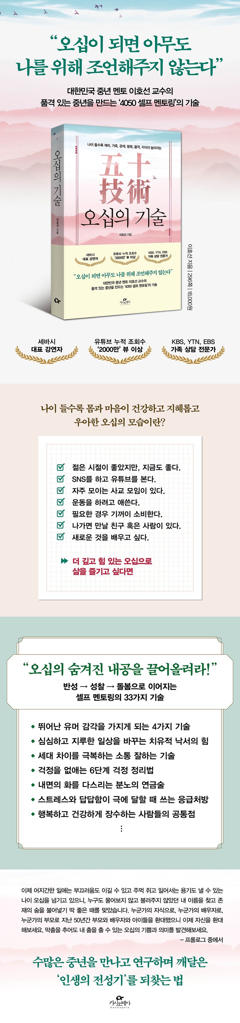 오십이 되면 내 삶을 잘 다루는 방법이나 능력, 즉 기술을 가지고 있어야 한다. 이제 이 책을 읽으며 오십의 기술을 하나하나 익혀보자. 행복하고 풍요로운 중년을 보낼 수 있게 될 것이다.