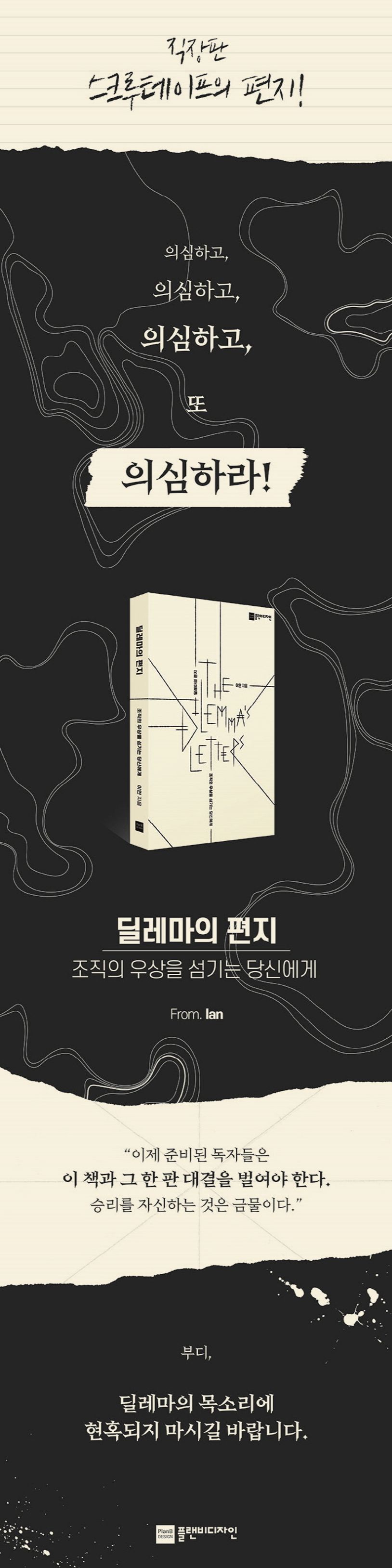 이 책은 경제ㆍ경영서이자, 픽션이다. 그러나 이 책에서 나오는 다양한 조직사회의 문제점들은 모두 우리가 경험했을 만한 사실들이다. 악마가 직장인 L에게 전하는 편지 형식을 통해 작가는 조직에서 흔들리고 있는 사회인들에게 메시지를 전한다. 이 책 ‘딜레마의 편지’에 등장하는 인물들은 다음과 같다.