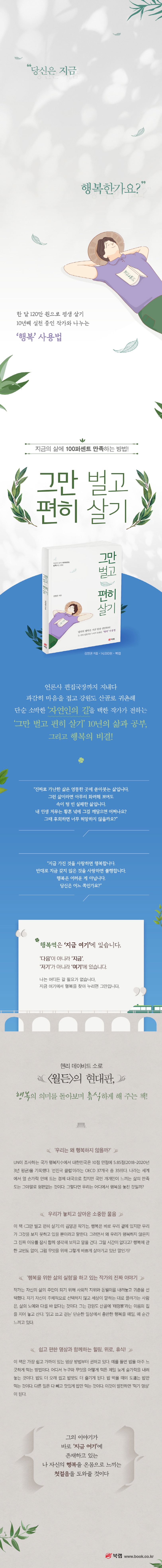 돌이켜 보니 10년 전 그만 벌기로 결심한 것이 자기 인생에서 가장 위대한 행복 선언이었다고 그는 자신한다. 왜냐하면 지금 가진 것에 기꺼이 맞춰 살겠다는 마음가짐이야말로 삶과의 투쟁을 멈추는 종전 선언이고, 고달픈 삶과 화합하는 평화 선언임을 저리게 깨달았기에. 그래서 그가 전하는 삶의 비의!