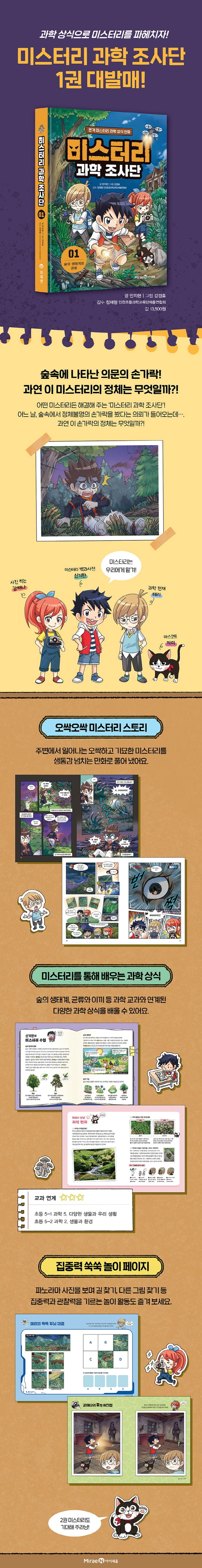 책 속으로 빨려 들어가는 오싹하고 신기한 미스터리 스토리를 생동감 넘치는 만화로 풀어 냈습니다. 또한 만화 중간중간에 수록된 정보 페이지는 ‘숲의 생태계’와 ‘숲의 기능’, ‘균류’와 ‘이끼’ 등 초등학교 5학년 1학기 과학 5. 다양한 생물과 우리 생활, 초등학교 5학년 2학기 과학 2. 생물과 환경 단원 등에서 다루는 핵심 내용을 담고 있지요. 어렵게만 느껴졌던 과학 상식을 미스터리를 더한 흥미로운 이야기를 통해 즐겁게 배워 보세요!