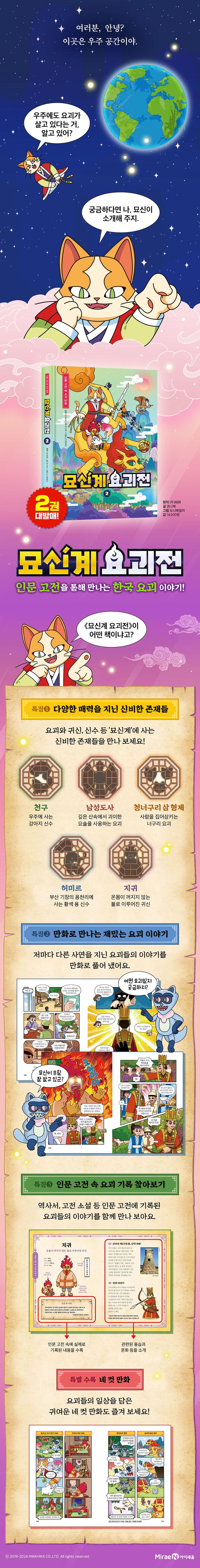 《묘신계 요괴전》은 《삼국유사》, 《삼국사기》 등의 역사서, 《남정팔난기》 등의 고전 소설 등 옛 문헌에 기록된 내용은 물론이고, 구전으로 전해 내려오는 신화와 민담까지 다양한 인문 고전을 바탕으로 구성한 ‘인문 고전 속 요괴 만화 시리즈’입니다. 묘신계에 살고 있는 요괴들을 재미있는 만화로 만나고, 이 요괴들이 인문 고전 속에 어떤 모습으로 등장하는지, 또 이와 관련된 역사와 문화 등 인문학적 지식까지 함께 살펴보세요. 묘신계만의 흥미로운 설정이 더해진 요괴 이야기에 빠져들어 책을 읽다 보면 어느새 인문학적 소양도 쑥쑥 자라 있을 것입니다.