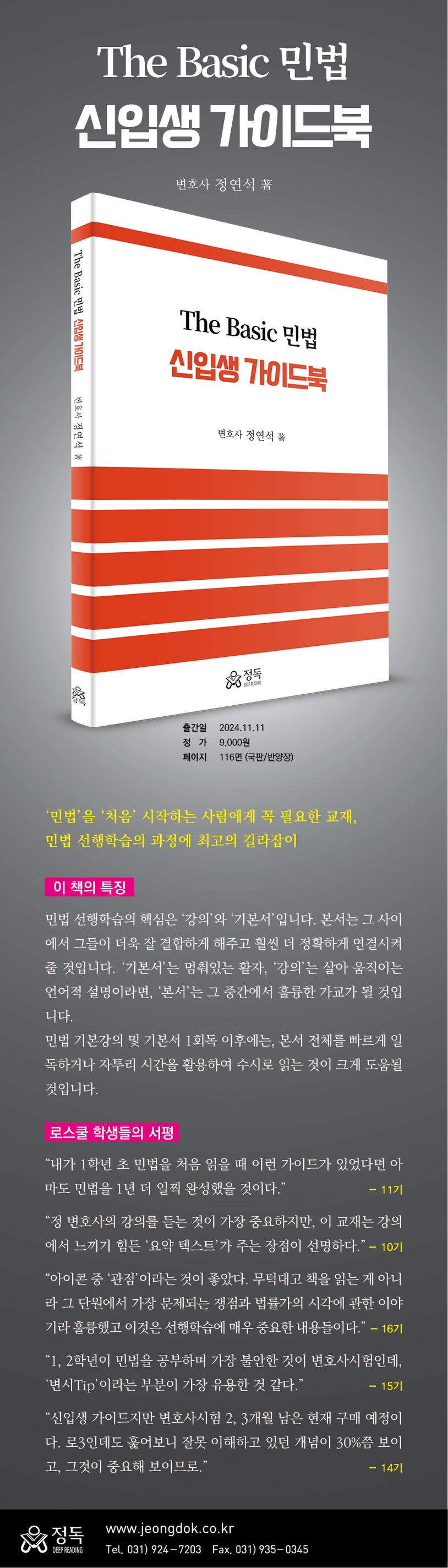 민법을 처음 시작하는 사람에게 필요한 교재로, 민법 선행학습의 길라잡이가 될 수 있도록 집필하였다. 처음 민법을 공부하는 사람이면, 본서는 민법선행 기본강의 직전에 빠르게 읽고 곧이어 강의를 듣는 것을 전제로 하고 있다. 아무리 중요한 내용이어도 기본서에 설명이 친절히 이뤄진 부분은 모두 생략하였고, 강의에서 중점적으로 다룰 풍부한 논리와 다양한 예시들을 굳이 모두 실으려고 애쓰지는 않았다.
