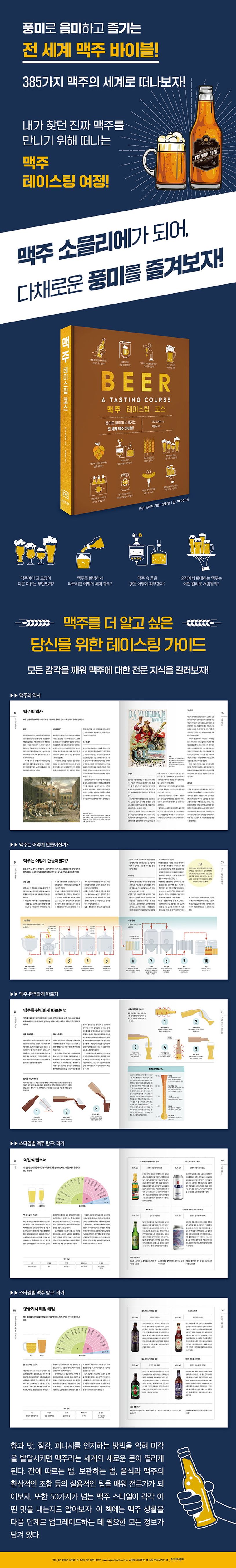 이 책은 맥주의 풍미에 초점을 맞추고 있다. 먼저 원료와 양조 방식을 통해 왜 이런 맛이 나는지, 맛을 어떻게 느끼고 표현해야 하는지 알려준다. 생맥주와 숙성 맥주, 오프 플레이버, 음식과의 조합 등 테이스팅을 위한 기본 정보와 더불어 라거, 에일 등 5가지 대표 스타일을 55개 군으로 세분해 총 385가지 맥주의 풍미와 맛 프로필을 제공한다. 따라서 이 책을 다 읽을 때쯤이면 특정 맥주를 마실 때마다 풍미와 특성을 제대로 이해하고 느끼며, 적절한 용어로 표현할 수 있게 될 것이다.