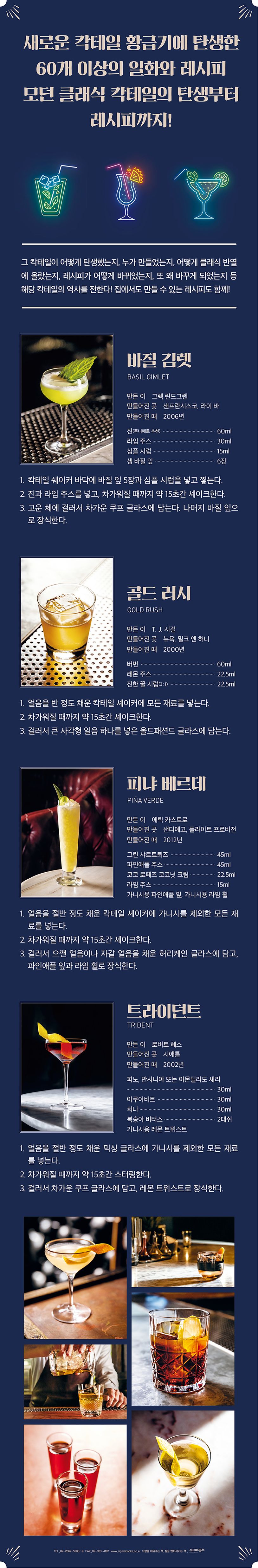 이 책에서는 칵테일을 창조한 바텐더와 평론가, 당시 바를 운영했던 이들의 증언을 통해, 이 모든 칵테일이 어떻게 탄생했는지, 누가 만들었는지, 어떻게 클래식 반열에 올랐는지, 그리고 레시피가 어떻게 바뀌었는지, 또 왜 바꾸게 되었는지도 설명해주면서 해당 칵테일의 역사를 전하고 있다. 더불어 해당 칵테일의 레시피도 실려 있어, 한번쯤은 바텐더가 되어 칵테일을 만들어봐도 좋을 것이다.