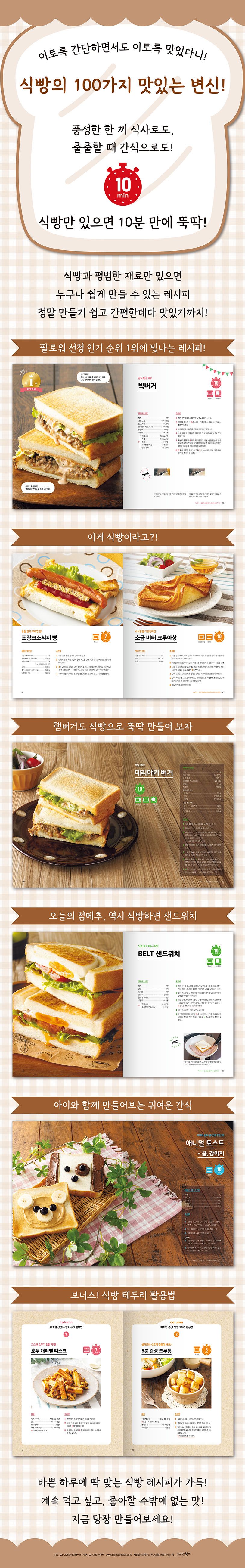이 책은 식빵과 냉장고 안에 있을 법한 평범한 재료를 이용해 누구나 쉽게 만들 수 있는 레시피를 담고 있다. 연년생 아이들을 키우는 저자는 즐겨 찾던 베이커리에 빵을 사러 가는 일조차 시간을 내기 어려웠고, ‘사러 갈 수 없다면 식빵으로 한번 만들어 볼까?’라는 생각에 레시피를 고안해 인스타그램에 올리기 시작했다고 한다. 그래서 이 책의 레시피는 정말 만들기 쉽고 간편한데다 맛있기까지 하다! 너무 바쁘고 배고픈 날에도 순식간에 만들 수 있고, 주말에 아이들과 함께 만들어 먹을 수 있는 100가지 레시피를 소개한다.