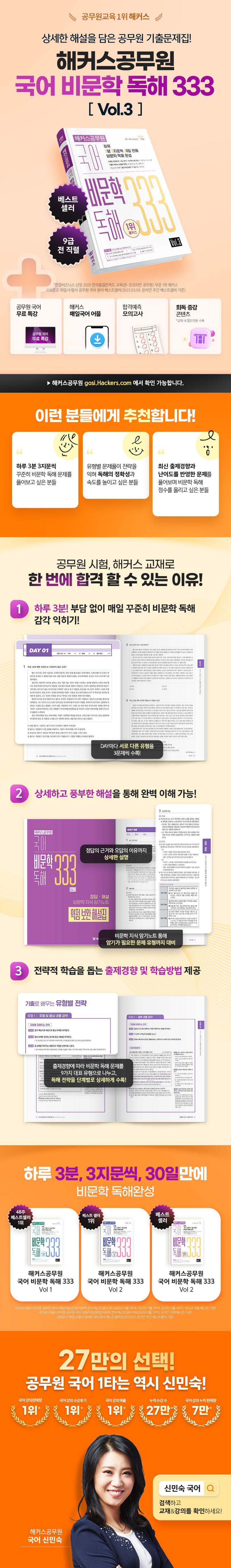 해커스공무원 국어 비문학 독해 333 Vol 3 (9급 전 직렬, 7급 지방직, 군무원 | 하루 3분 3지문씩 30일 만에 비문학 독해 완성|해커스 매일국어 어플)