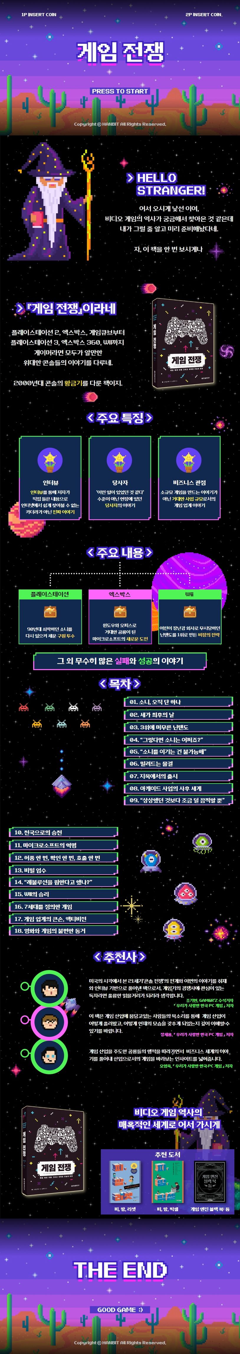 전쟁을 거듭하며 발전한 인류사처럼 게임의 역사도 그렇다. 〈마리오〉의 닌텐도, 〈그랜드 테프트 오토〉의 플레이스테이션, 〈헤일로〉의 엑스박스 등 세계적인 게임을 구동하는 콘솔의 눈부신 발전과 함께 게임 개발사의 흥망성쇠를 그 당시 업계 관계자에게 생생하게 들어보자. 게임 산업의 역사를 거울삼아 앞으로의 게임 산업의 미래를 점쳐보고 싶은 이들에게 이 책을 강력히 권한다.