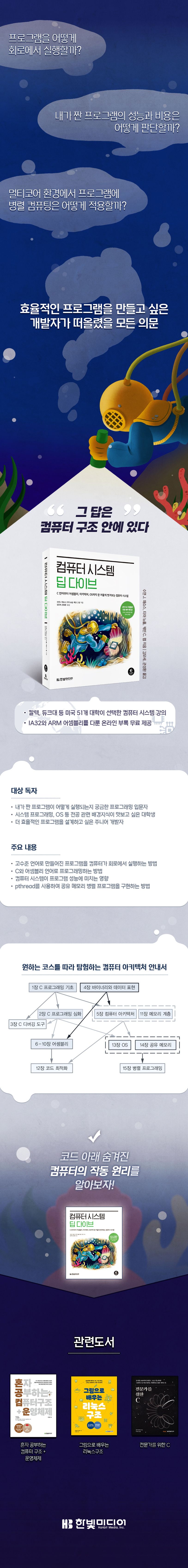 이 책은 C 프로그래밍부터 아키텍처 기초, 어셈블리 언어, 멀티스레딩 등 컴퓨터 시스템과 관련한 다양한 주제를 다룹니다. 컴퓨터 시스템과 여러 시스템이 공통으로 가진 주제, 시스템에서 효율적으로 실행되도록 프로그램을 설계하는 방법을 소개해 컴퓨터가 프로그램을 실행하는 방식을 이해하도록 돕습니다. 컴퓨터 시스템을 탐구하는 여정에 첫발을 내디뎌봅시다.
