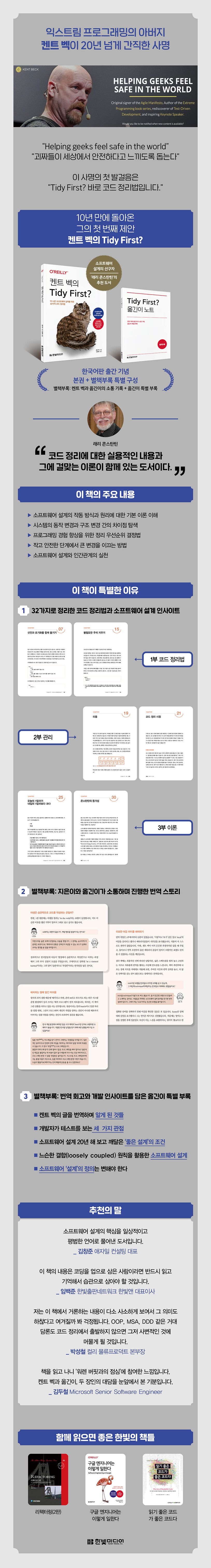 켄트 벡의 Tidy First?: 더 나은 소프트웨어 설계를 위한 32가지 코드 정리법 (전 2권)