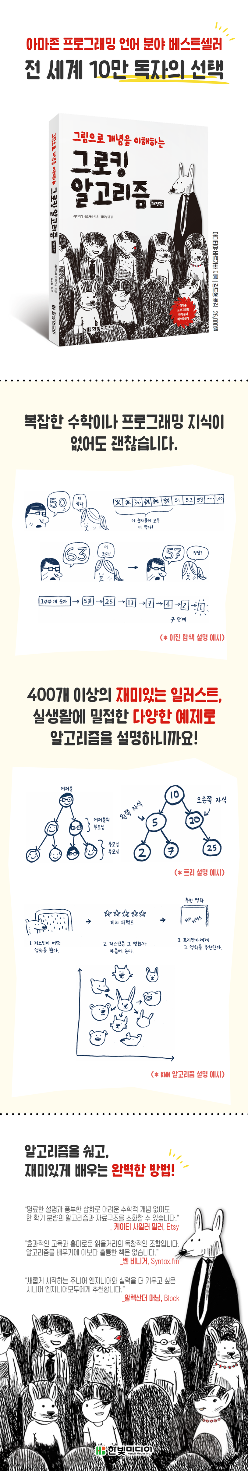 400개 이상의 재미있는 일러스트와 실생활 예제를 통해 정렬과 탐색 같은 기초 알고리즘부터 데이터 압축, 인공지능 등의 고급 알고리즘까지 폭넓게 다룬다. 이번 개정판에서는 특히 독자 요청이 많았던 트리와 NP-완전 문제에 대한 구체적 설명이 추가되었다.