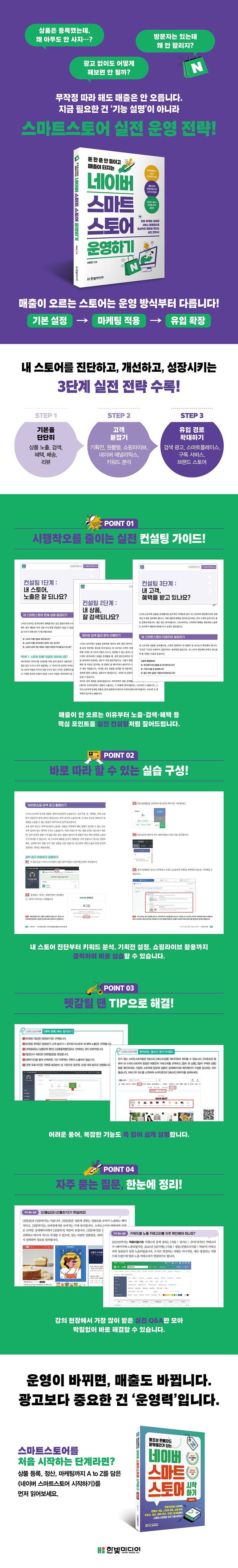 특히 네이버플러스 스토어, 스마트플레이스, 쇼핑라이브 등 네이버가 제공하는 다양한 채널을 활용해 매출을 높이는 가장 효과적인 전략만 골라 담았다. 《네이버 스마트스토어 시작하기》 이후 실제 매출 향상을 원하는 모든 스마트스토어 운영자에게 꼭 필요한 책이다.