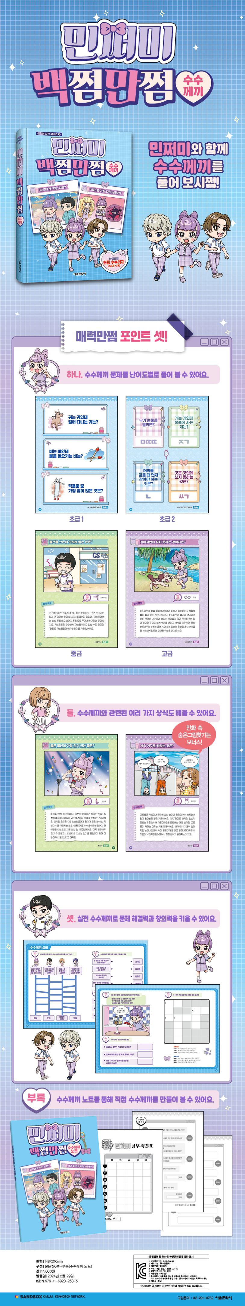민쩌미 백쩜만쩜 수수께끼의 매력만쩜 포인트! 하나. 난이도별 초등 수수께끼 250개로 재미가 쏙! 둘. 재미있는 만화로 흥미와 사고력이 쑥쑥! 만화 속 숨은그림찾기는 보너스! 셋. 수수께끼 관련 상식으로 지식 레벨 업! 넷. 실전 수수께끼로 문제 해결력과 창의력이 업!