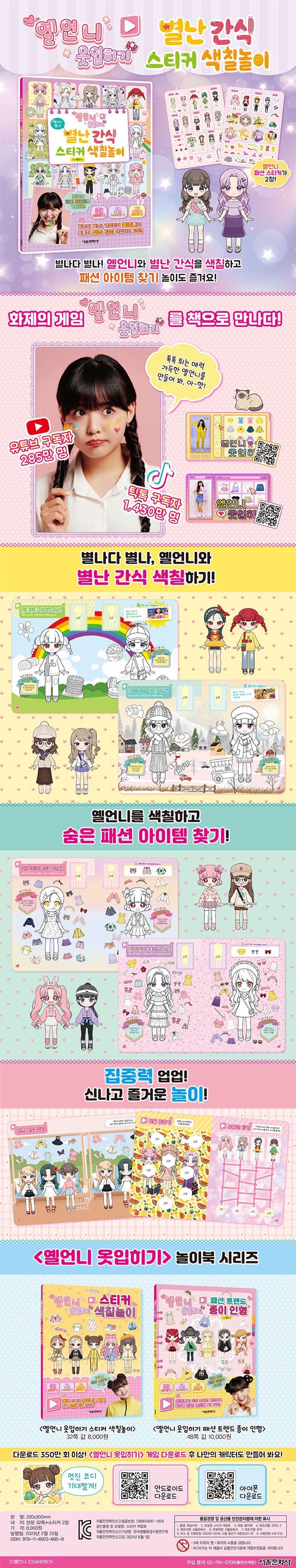유튜브 구독자 289만, 틱톡 구독자 1,430만 구독자 인기 크리에이터 옐언니의 별나다 별나, 별난 간식! 콘텐츠를 스티커 색칠놀이 책으로 만나 보세요.